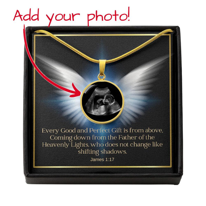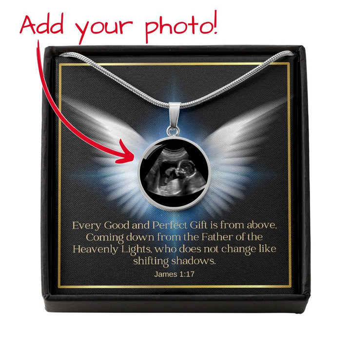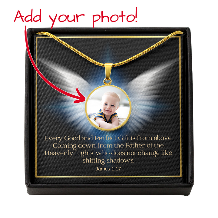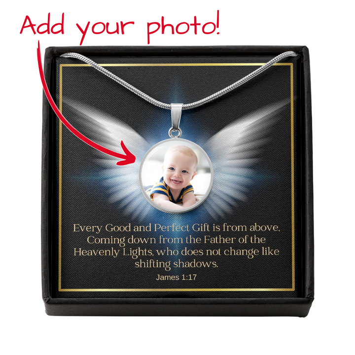 Buyer Image Upload - Circle Pendent Necklace with Bible Verse Card - James 1:17